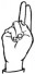 На ћирилици написано НЕНАД КРАГИЋ састоји се из 11 слова [?]. Исписано ћириличном једноручном азбуком за глувонеме: